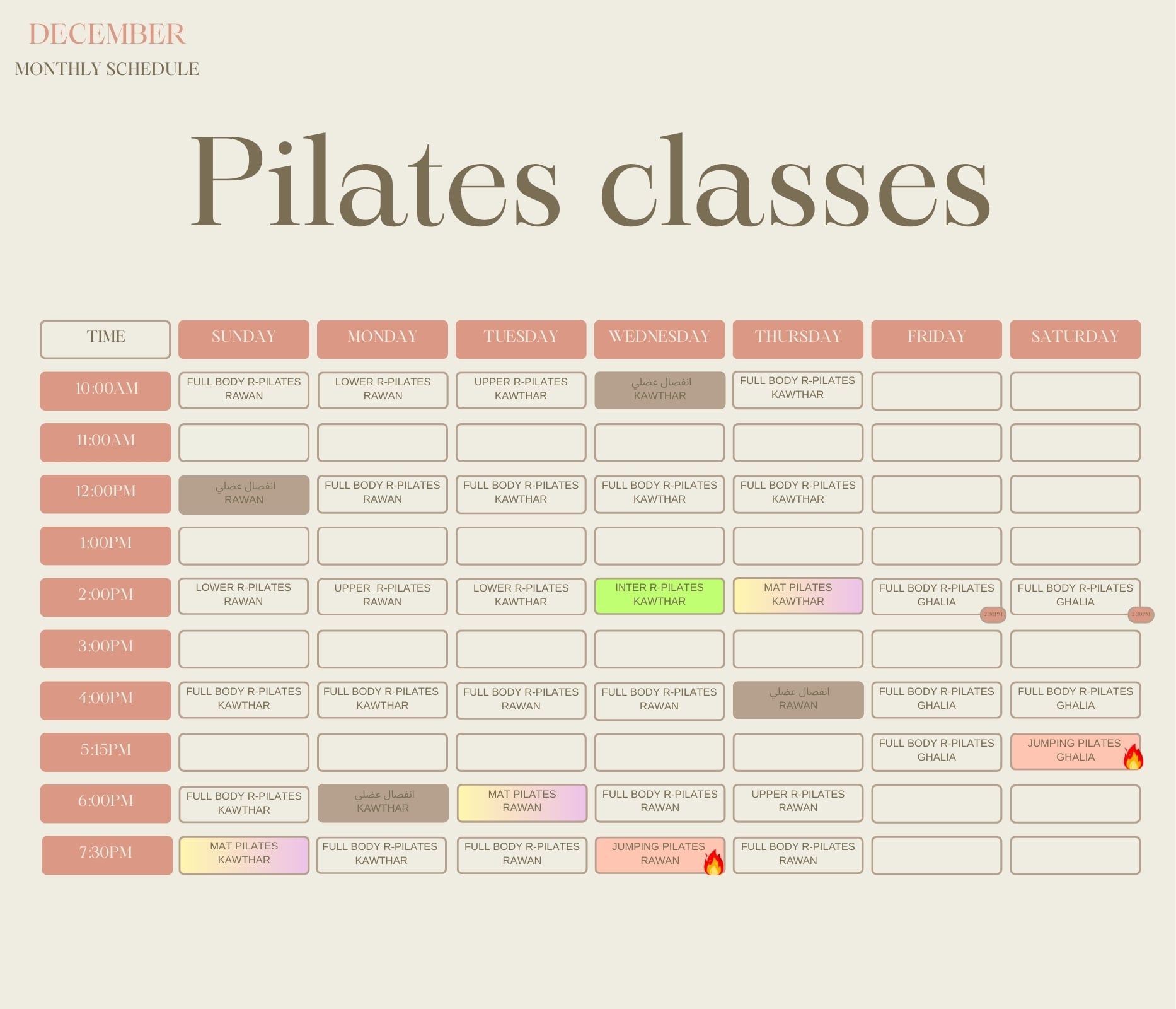 في موقعنا، نأخذك في رحلة شاملة نحو العافية الجسدية والذهنية من خلال تمارين البيلاتس المصممة بعناية لتناسب جميع المستويات، من المبتدئين إلى المتقدمين. نؤمن بأن البيلاتس ليس مجرد تمرين، بل أسلوب حياة يعزز القوة الداخلية، ويعيد التوازن إلى الجسم، ويخفف التوتر من العقل.